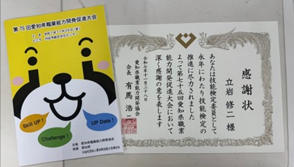 第75回愛知県職業能力開発促進大会で当社社員のSさんが表彰されました。